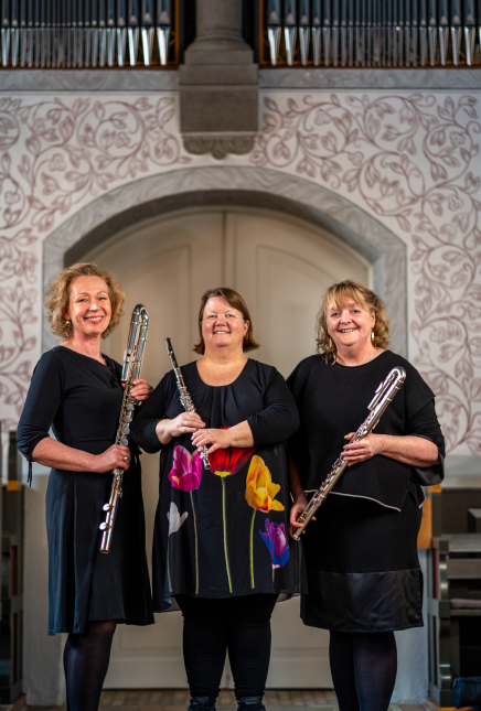 Vi tilbyder en unik sammensætning af 3 forskellige fløjtetyper som tilsammen åbner for et velklingende og sanseligt rum. De dybe fløjlsbløde toner fra basfløjten blander sig med den varme klang fra altfløjten og øverst fletter den lyse fløjte sine sprøde triller ind i musikken.
